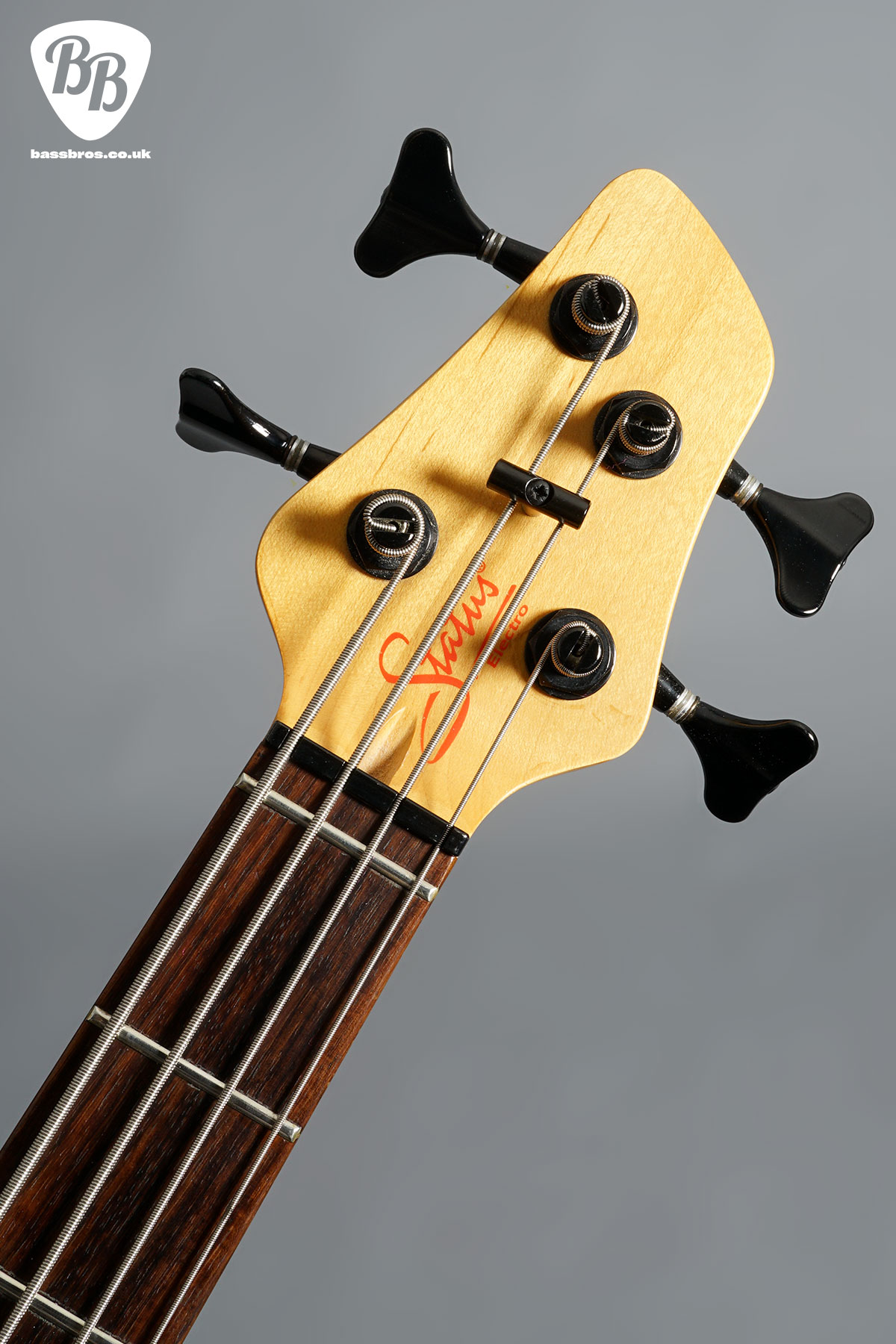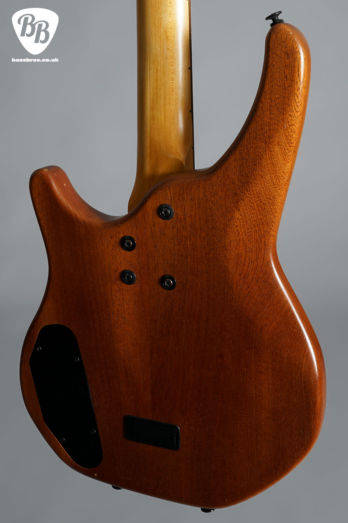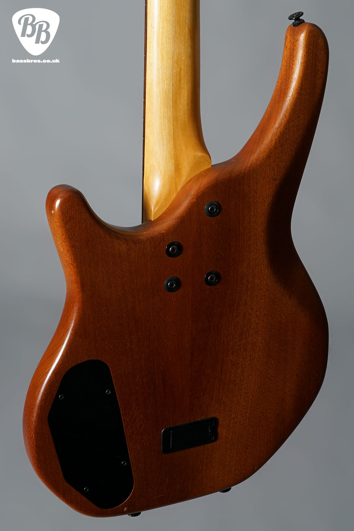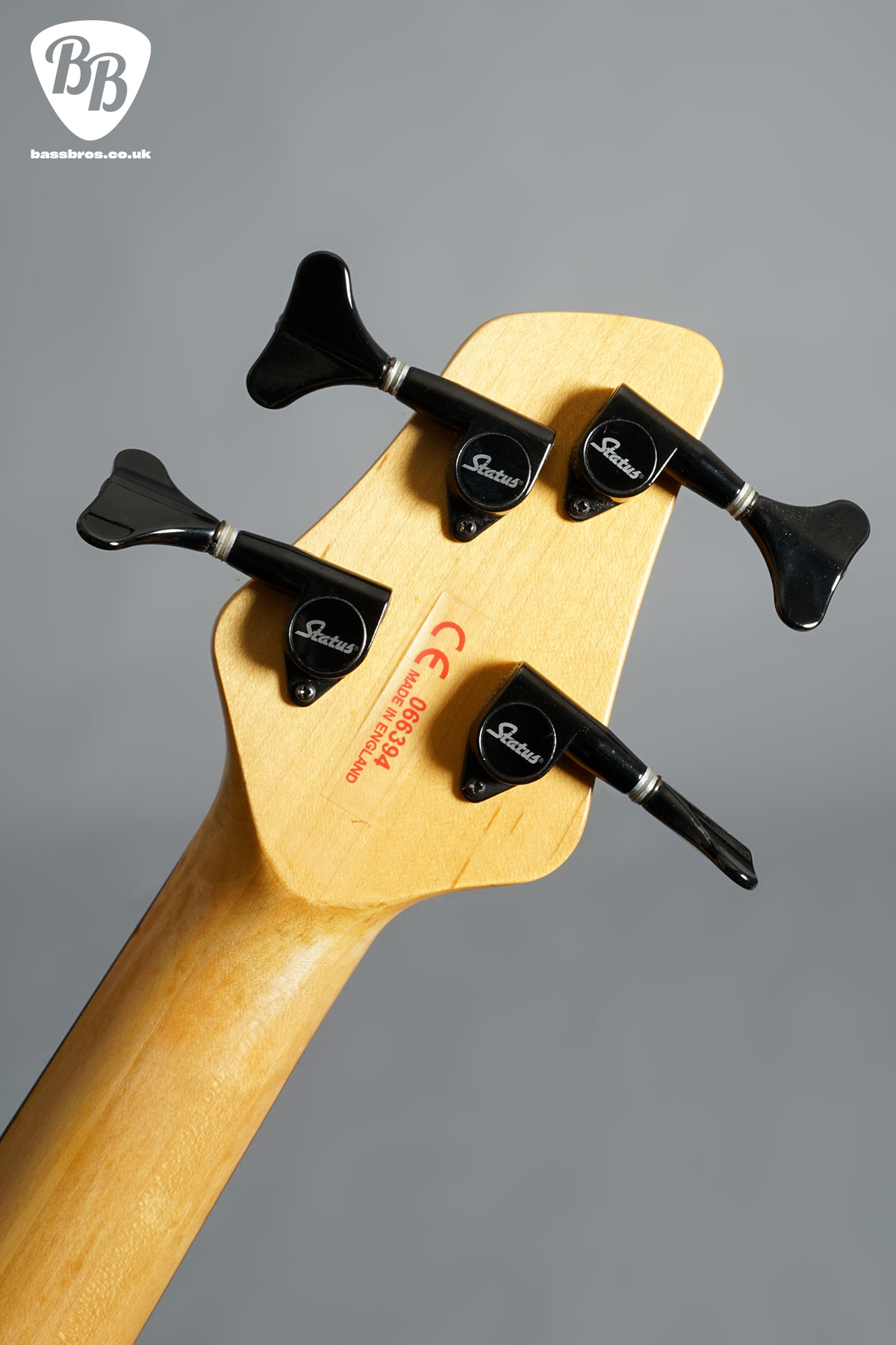 A different one from Status with this semi hollow Status Electro II. This one features a mahogany body, flamed maple top and piezo pickup along side the magnetic hyperactive pickup. These are nice and light basses, this one weighs in at just 7lbs11oz/3.5kgs There are a few small marks to the body but nothing major. Hardcase included