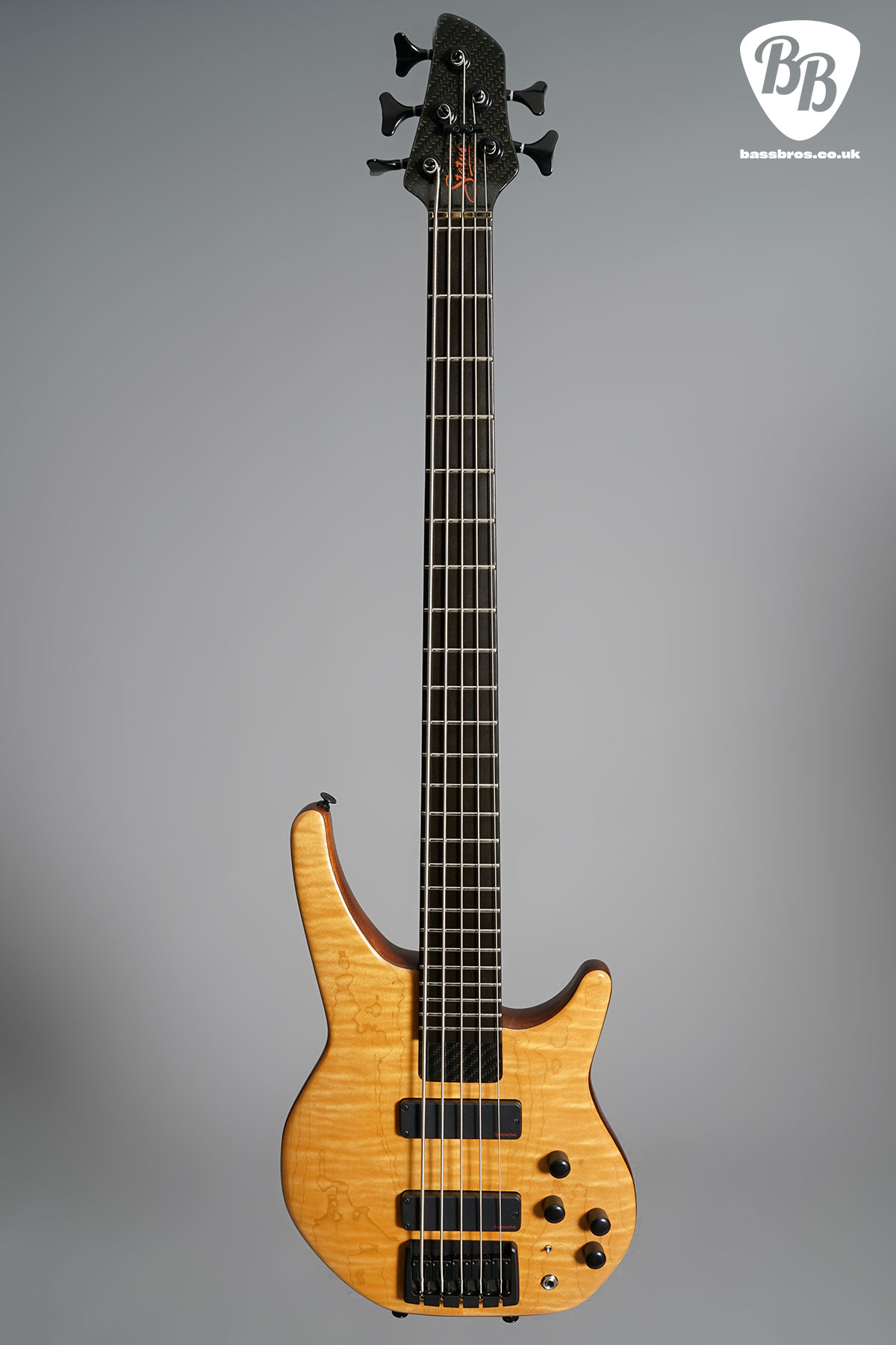 A beautiful Status S1 Deluxe 5 with a fantastic maple top! These are fantastic basses with the solid, stable graphite necks. This bass is in great condition with a few signs of wear on the back of the body, but otherwise the rest of the bass is in great shape. We have fully checked over the bass and everything, including the trussrod and electronics, works perfectly. Included is the original hardcase.